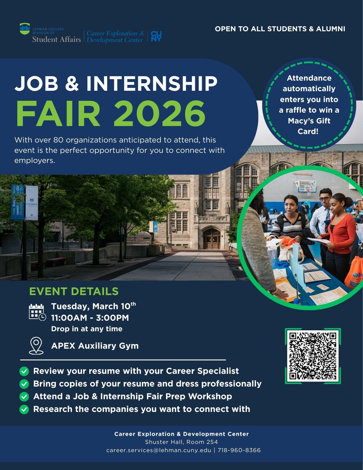 Lehman College will be hosting a job and internship fair at their Apex Center, with many companies and organizations sharing with attendees positions that they are currently hiring for.